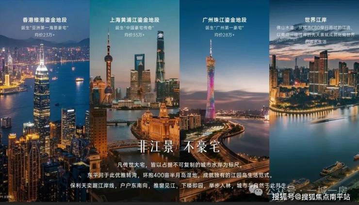 纵览东平河约2.8km黄金江岸线,遵循“每距江岸百米,地脉价值倍增”, 一线江景无遮挡,古时为海上丝绸之路重要航道,今日为城市滨水高端人居封面