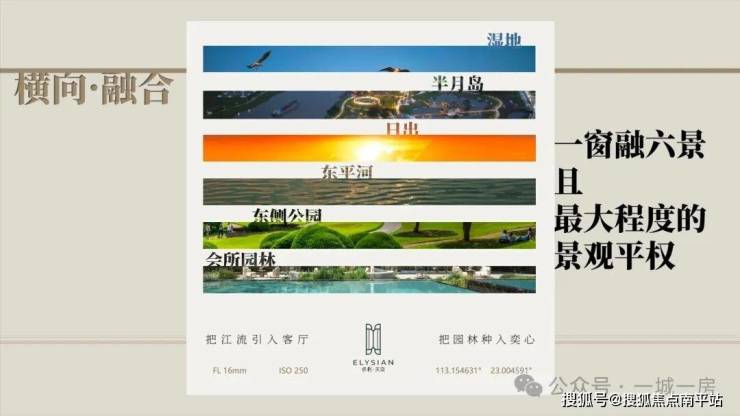 站在佛山保利天奕的房子里,由近到远,依次看到会所园林、东侧公园、东平河、日出、半月岛、湿地生态,一窗融六景,最大程度做到景观平权,将东平河与半月岛的壮丽景色以全景式、沉浸式的方式引入室内每一个角落