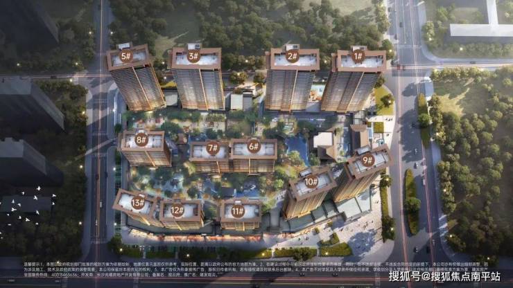 ③全面景观优势布局:整体地势抬高,商住分离,楼栋错落式结合部分转角布局,视野开阔。