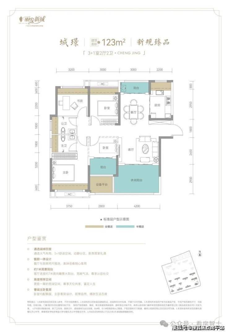 负公摊爆品,加赠送得房率高约103%,赠送面积约“三间房”,户型方正南北通透,南向7米瞰景大阳台,宽景飘窗主卧,足不出户聆听鸟语花香。