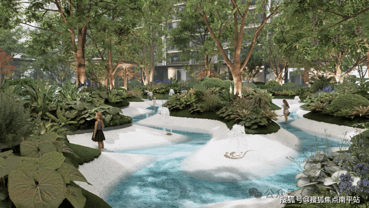 如沐光森屿水苑和大树栖息剧场,集减压、游乐、健康与社交于一体,构筑专业、多元的全龄成长陪伴型景观与休闲空间,主打一个高强度陪伴。