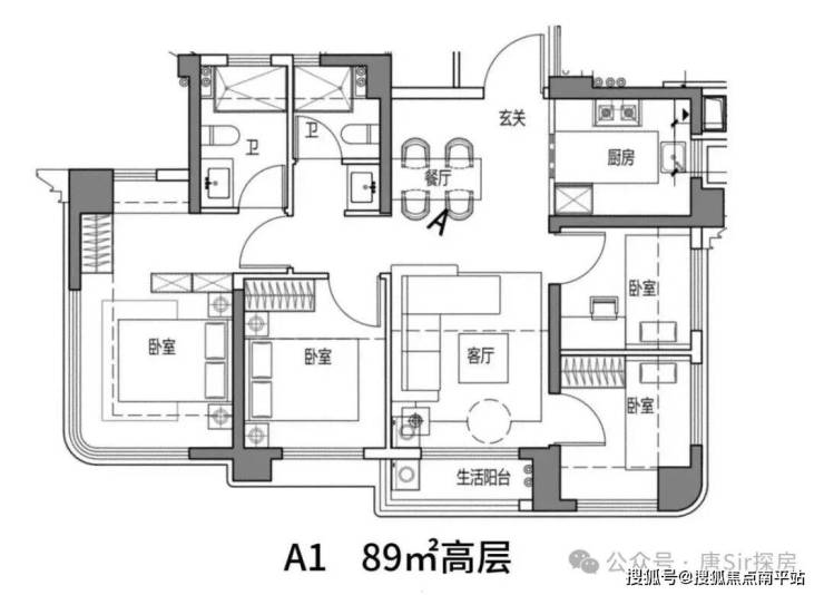 这个户型确实可以,入户赠送大前厅,主卧及客厅均有大阳台,次卧还有阳台。主卧180°采光。