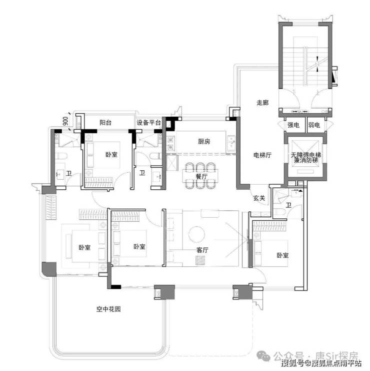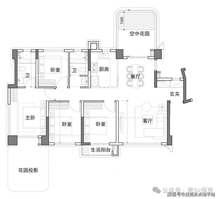 主卧配备超大空中花园(鲤悦的升级版),次卧及客厅还有超长的跑马阳台。