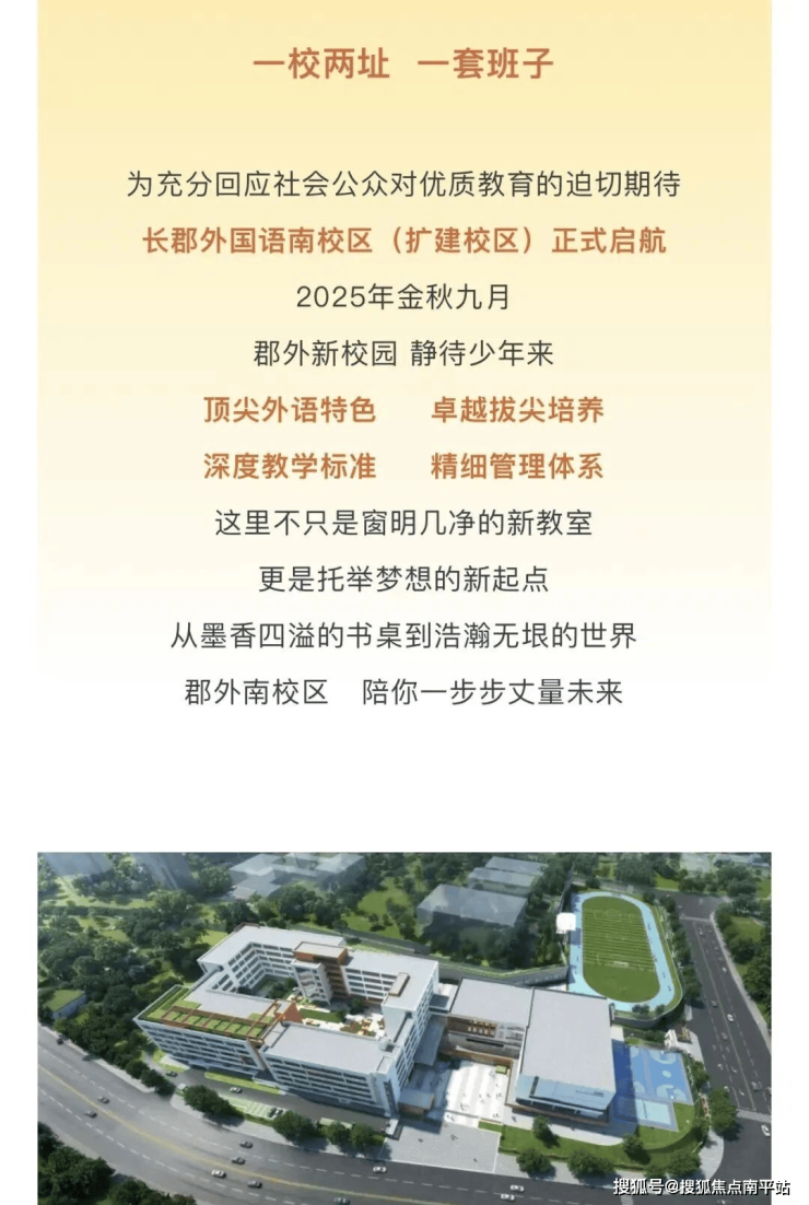 长郡外国语实验中学南校区,是天心区政府重点打造的“高起点、高标准、高品质”公办初中,与长郡外国语实验中学一脉相承。