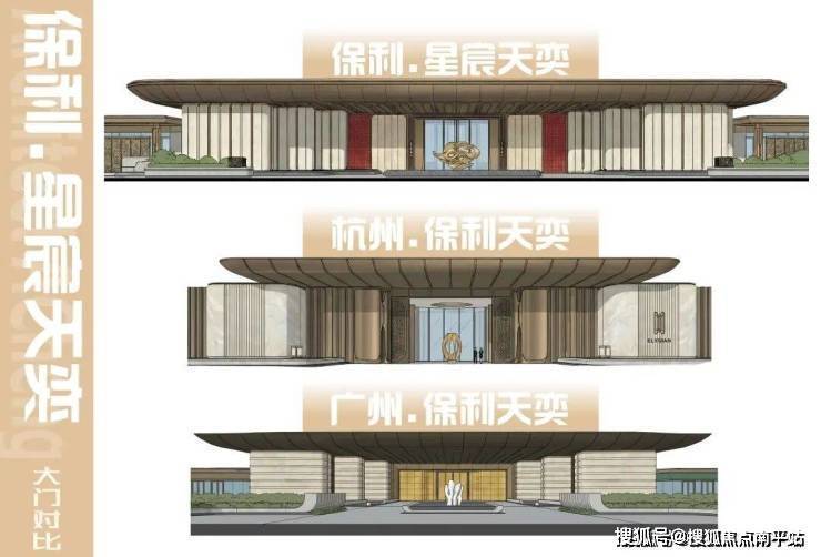 我们先来对比一下长沙、广州、杭州三个城市的三座天奕的主入口。