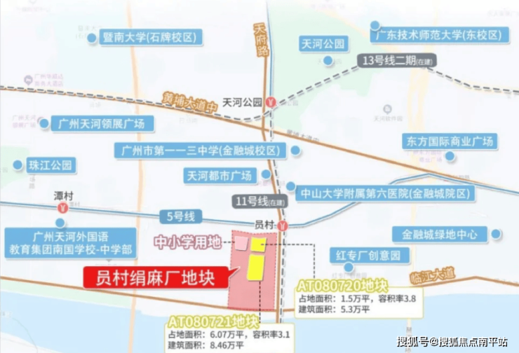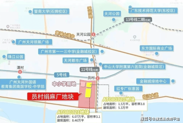 地块东北侧距离地铁5号线与11号线交汇的员村站仅150m,是天河难得的比较靠近地铁站的盘,前往珠城、琶洲、天河北、白鹅潭等地很方便,通达性很强