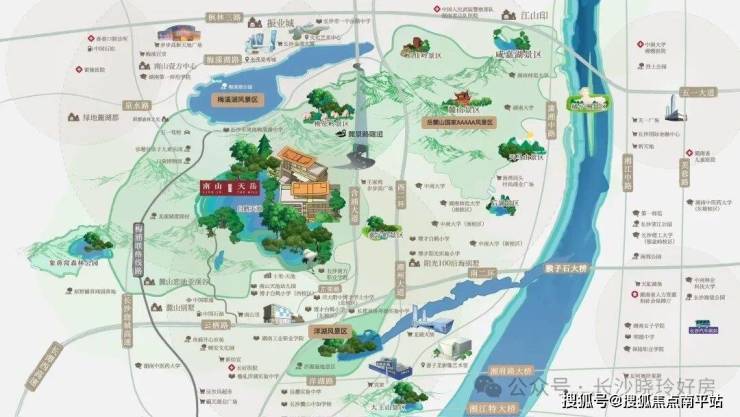 立于岳麓山脉之上 雄踞于梅溪湖与洋湖之间
