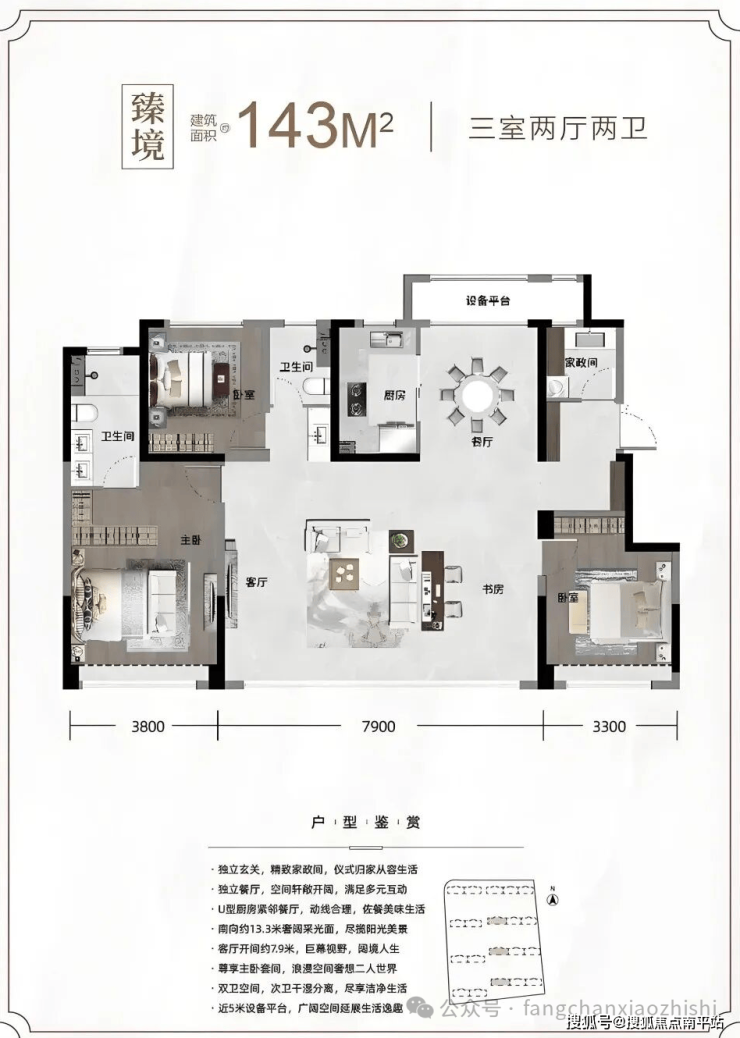 【人性化细节】:U型厨房、干湿分离卫浴、独立家政间,生活更高效;