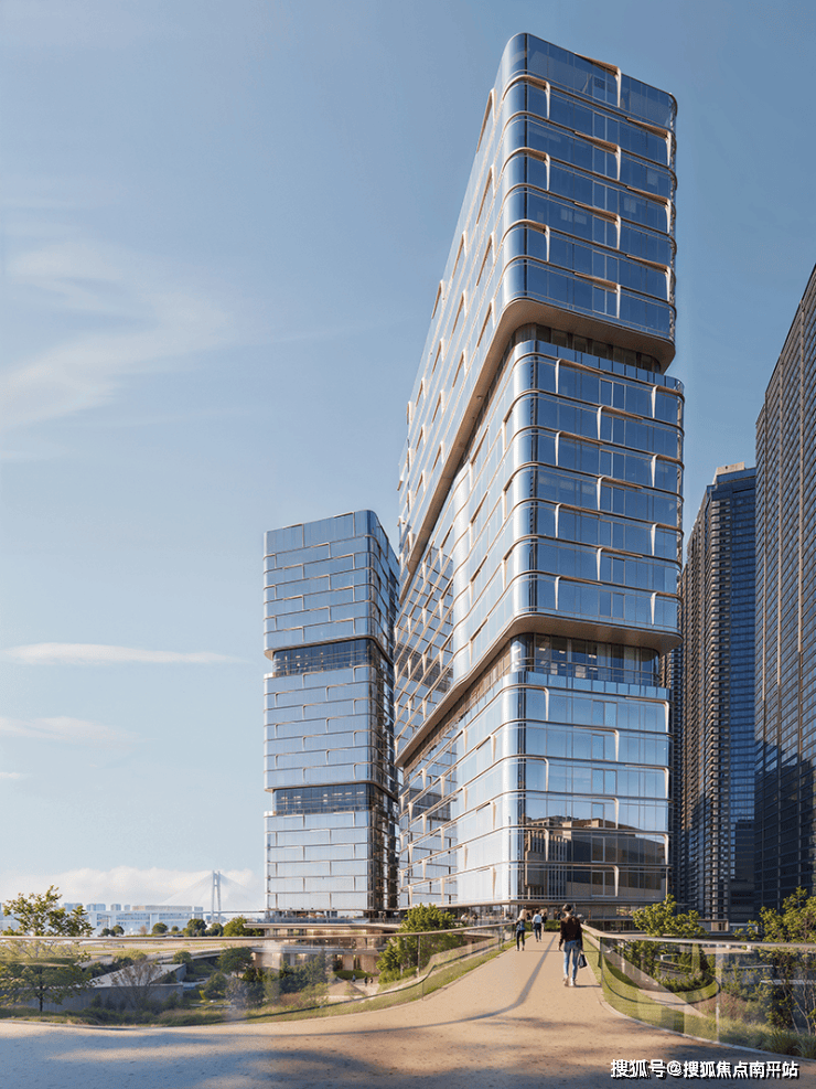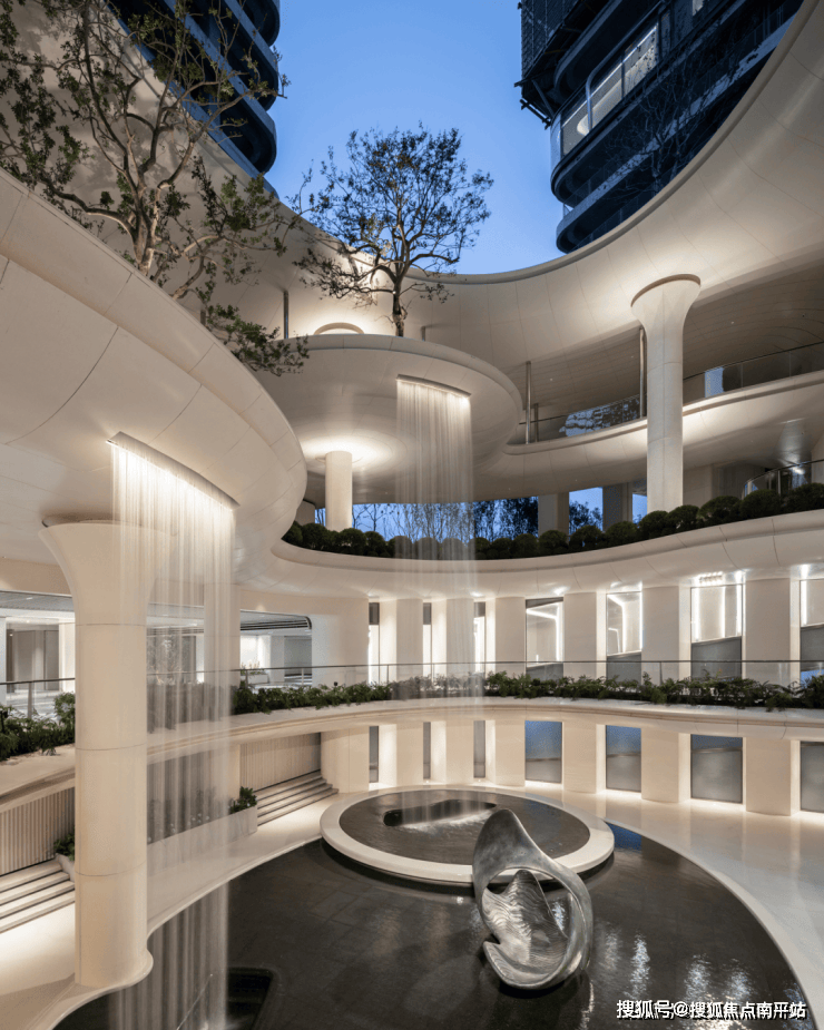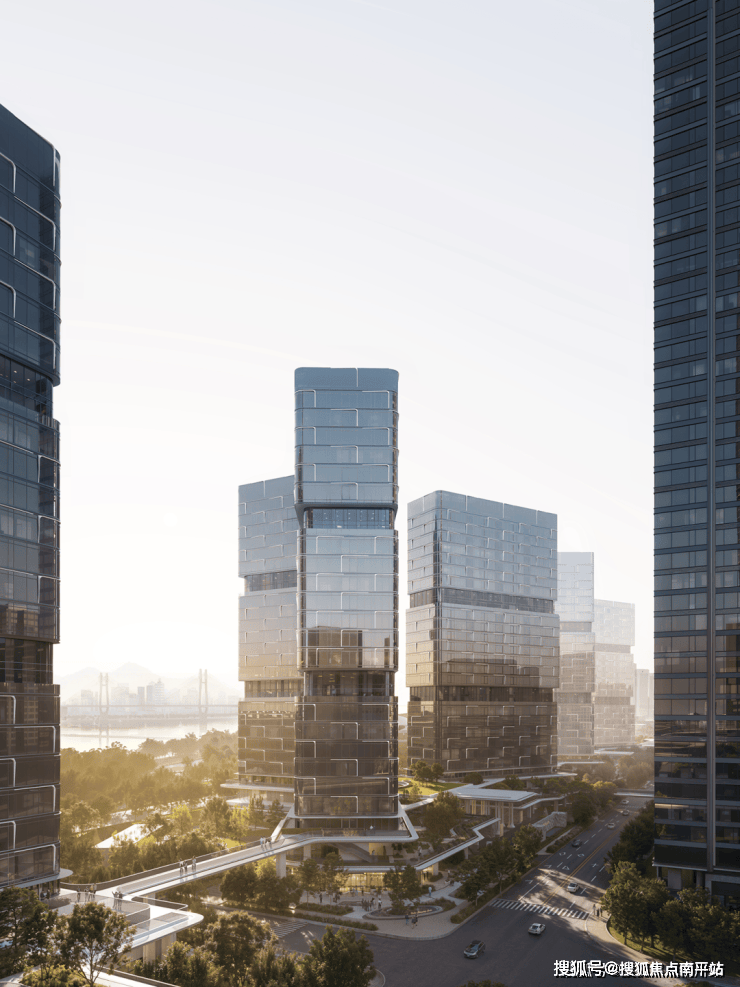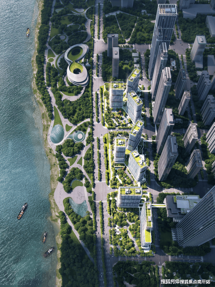 “生境底盘”作为枢纽空间,承担多层级、多流线的交互功能。立体路径连接8座塔楼与周边社区、滨江绿带,艺术中心、近人尺度的商业盒子、水平错动的天街和绿化平台共同营造亲和城市空间。