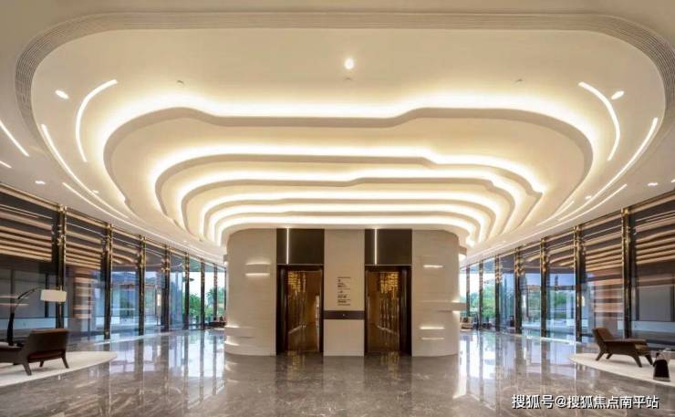 凤栖百舸——五星级酒店入园大堂,以船舸造型打造漂浮大堂,灵感来自于湘江之水,打造流动线条的造型,寓意着“遇水生财”“蒸蒸日上”