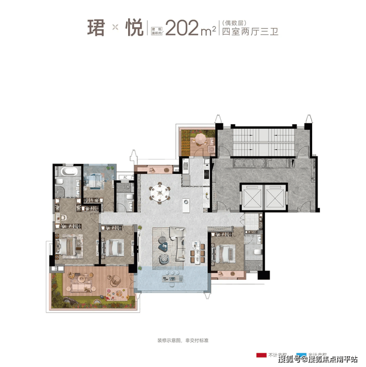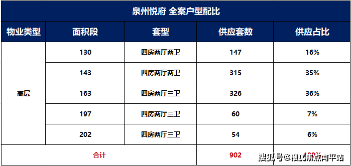 项目规划15栋高层,住宅套数902户,产品规划为建面130-202平四房。