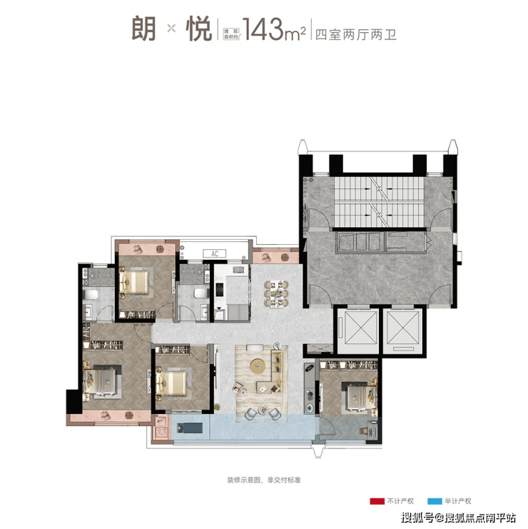 项目主力产品为143平四房、163平四房两个面积段,分别供应315套、326套,二者合计占比达71%。次主力产品为130平四房,共供应147套,占比约16%。项目辅以少量197/202平四房产品,二者分别占比7%、6%。