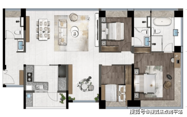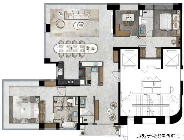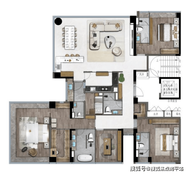 223㎡户型亮点:约8.5m*7.0m端厅,LDK一体化,双套房,主卧三面无柱观景。