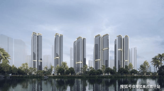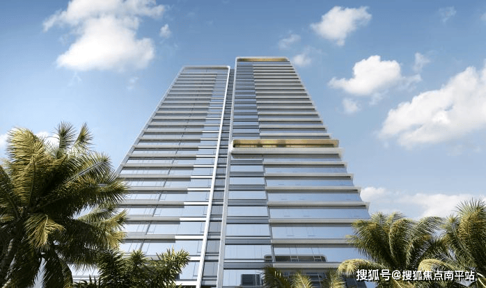 塔楼外立面以国际前沿视野,采用了先进的公建化立面设计语言,整体简约、通透大气。外立面汲取极简主义理念精髓,以简单的建筑语言,传达建筑整体利落的质感和视觉上的力量感,并运用几何美学与精工细作,呈现和而不同的气质。城市界面的塔楼立面采用落地玻璃窗辅以层间出挑的铝型材飘板,让住户能实时捕捉窗外山海和四时变化的同时避免阳光直射入户,从而达到节约能耗的目的。岭南区域气候潮湿,所有一层均不设住户,设置约5m净高架空层。