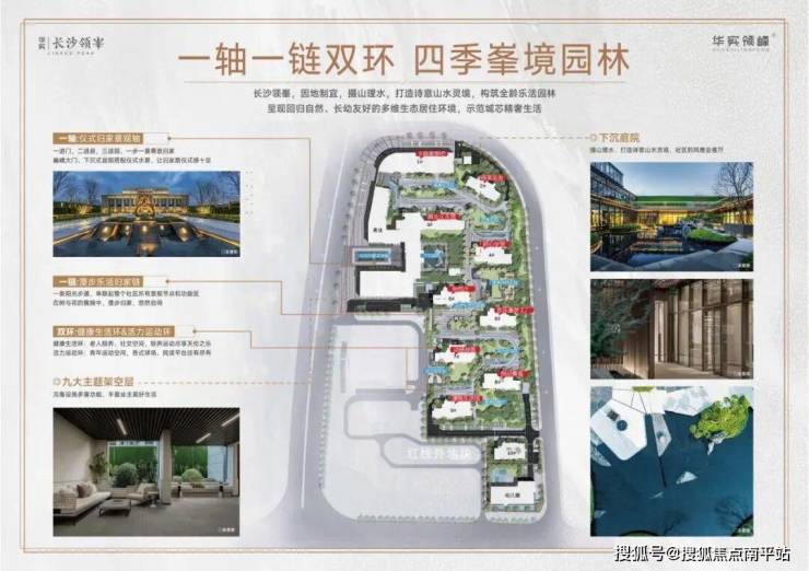 华实·长沙领峯一轴一链双环的四季峯境园林,以因地制宜、摄山理水的手法构筑山水灵境与全龄乐活的多维生态居住环境。