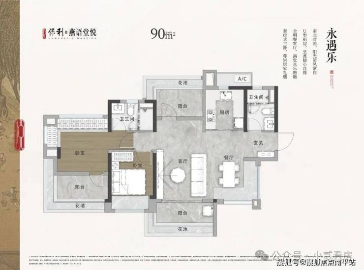 户型有90-94平横厅三房两卫,92平三房两卫,107-112平四房两卫,125平四房两卫