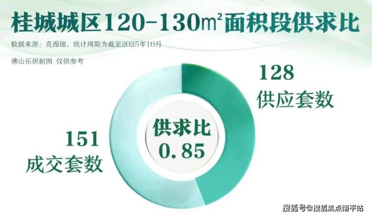 克而瑞数据显示,今年1-10月,桂城城区120-130㎡面积段供求比低至0.85,呈现出供不应求的局面。