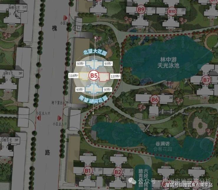 以黄槐路为界,项目分为AB两区开发,目前在售的是黄槐路以东的B区。