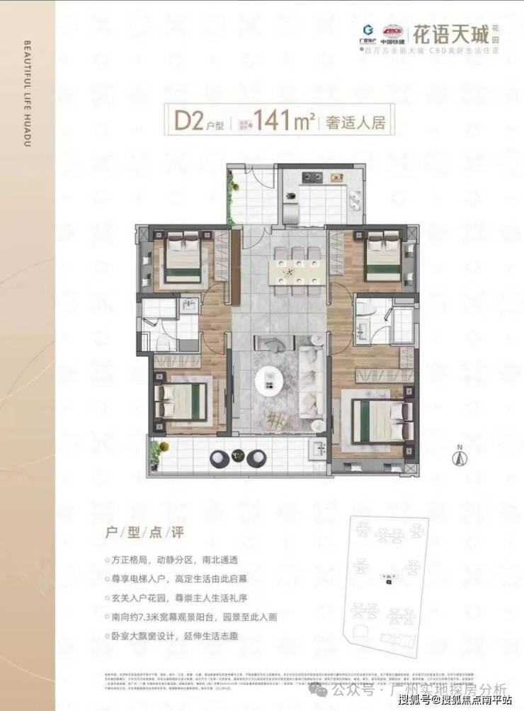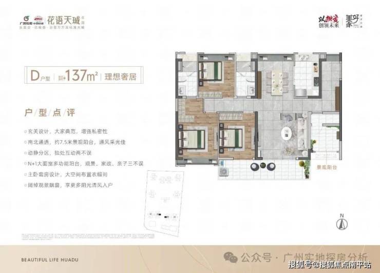 约137㎡3+1多功能空间,约7.5m观景阳台,南北对流,阔绰主套,带步入式卫生间,像更大空间,满足三代同堂。