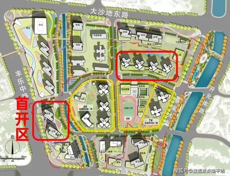 一共规划了7个地块,其中2个复建地块、2个融资地块、2个商业地块+1个学校地块。