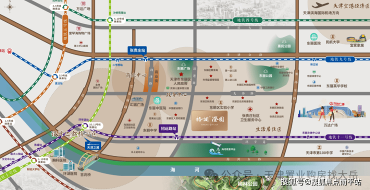 东丽格调·澄园位于东丽区跃进路与花园道交口,紧邻东丽实验小学南侧,地处东丽传统政务核心板块。作为该区域自2006年后首个新盘,项目填补了区域新房断供19年的空白。周边1公里范围内汇聚区政府、检察院等政务资源,东丽万达广场、东丽体育中心、汇城广场等商业配套触手可及,同时紧邻地铁11号线招远路站(直线距离约241米),通勤与生活便利性兼具。