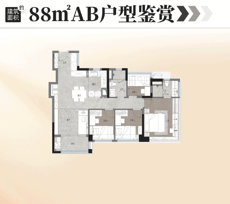 约88平户型,堪称“全周期变形金刚”: