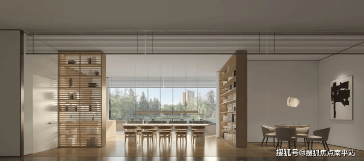开放式餐厨连通客厅,形成LDK方厅,无论是朋友聚会或是家族聚餐等不同社交需求,都能轻松容纳。观景尺度也相当豪横。