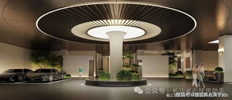 3、奢配长沙惟一中央车站式豪车展厅:整体是用一个非常有仪式感的十字圆厅,把访客车位、私家泊位和地下入户大堂连接在一起;更有豪华司机休息室、地库储藏间等专属配置,带给您的由内及外的从容自信。