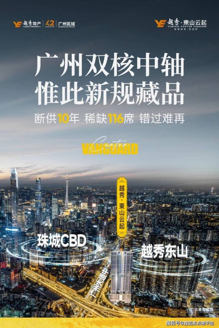 越秀·#东山云起(核准名东启轩),落子广州老东山与珠城CBD双核交汇处,是越秀打造的主城绝版全新规先锋系住宅,全盘仅116席,建面约99-139㎡高奢户型,坐拥白云山、珠江双景观
