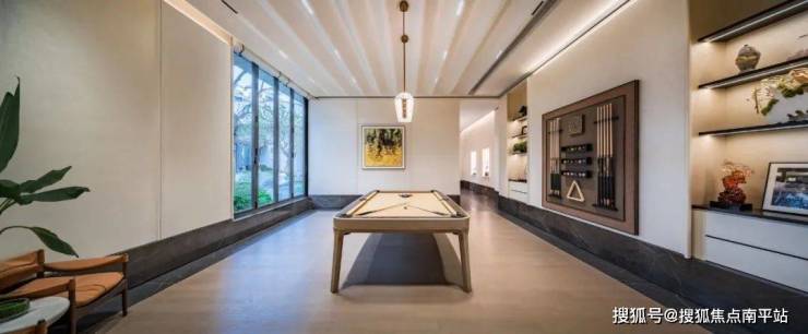 继续向前,是健身房、瑜伽室、台球室、乒乓球室组成的「运动健身区」。所有空间均朝向中央下沉庭院排布,确保自然光与风景能滋养每个角落。