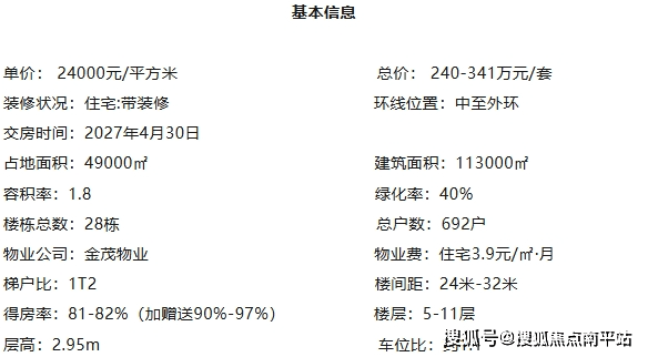 项目占地约4.17万㎡,计容总建筑面积约7.5万㎡,容积率1.8。全洋房社区,总计28栋5-11层一梯二住宅,共692户。