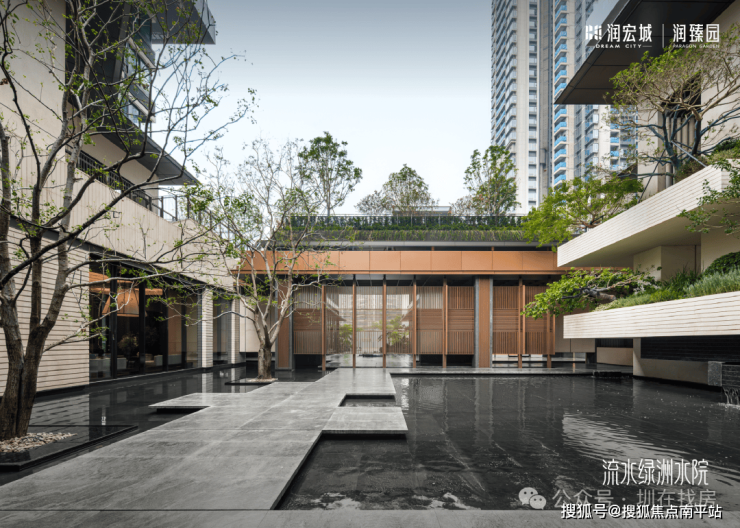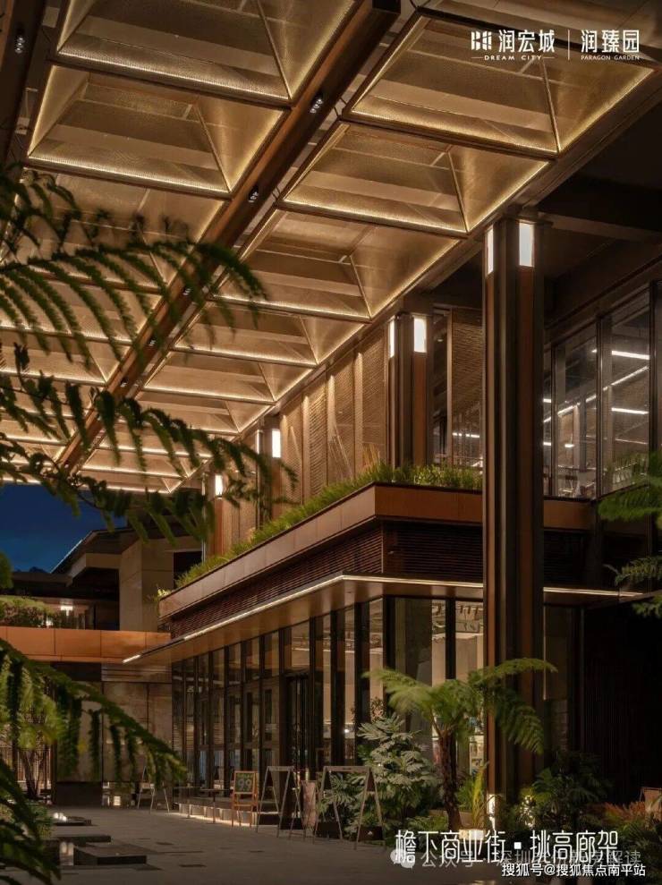 最后则是「庭院花园」,润宏城在每户楼栋单元门都定制了入户庭院。再加上中央车站、廊下烟火商业街区和檐上浮岛露台——