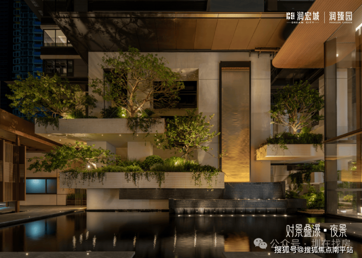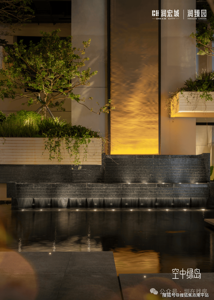 作为华润精心设计的小区景观,一到夜晚,浮岛花园下灯光掩映绿意,深邃而静谧,再多的城市喧嚣也比不过家的温暖。