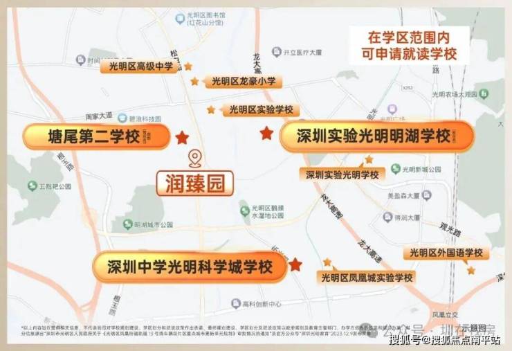 深圳中学光明分校、深圳实验光明分校、塘尾幼儿园、博华学校、光明区实验学校、光明区外国语学校