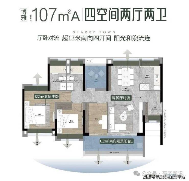 · 4.5 开间朝南,客厅主卧双南北对流