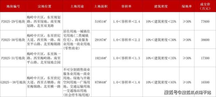 土拍回顾: 2025年11月21日,华润置地&泉州城建以15亿元竞得梅岭中片区4幅核心地块,即晋江市P2025-29、P2025-30,P2025-31、G2025-38号地块,其中,3幅为商住用地,1幅为商业综合用地,总面积超35万㎡。
