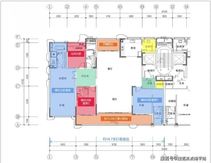 四开间朝南,南向面宽约达19.7米,并配置约13.2米超长南向三开间阳台。