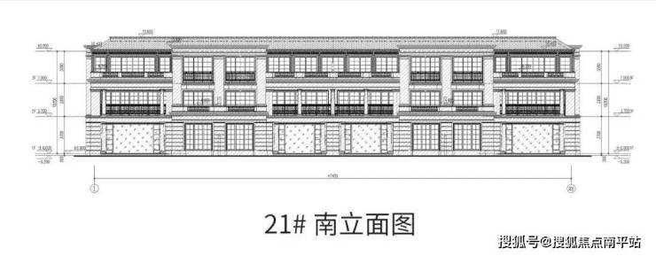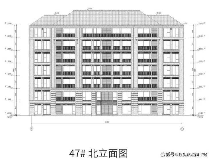 洋房北立面图参考如下,标准层层高约3.3米(1F为3.6米)。