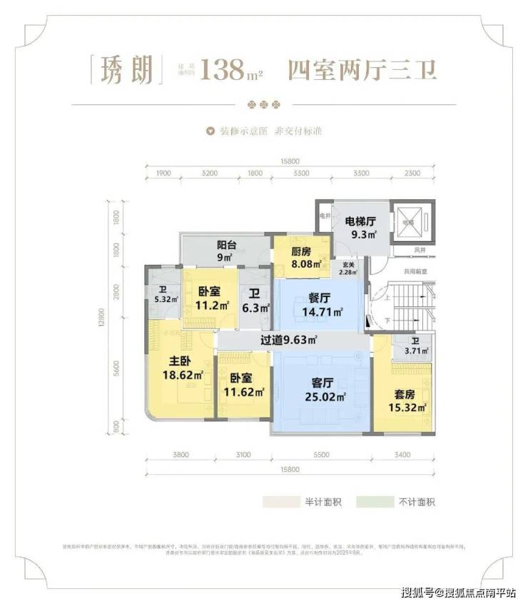 户型得房以及点评(不加电梯厅赠送)