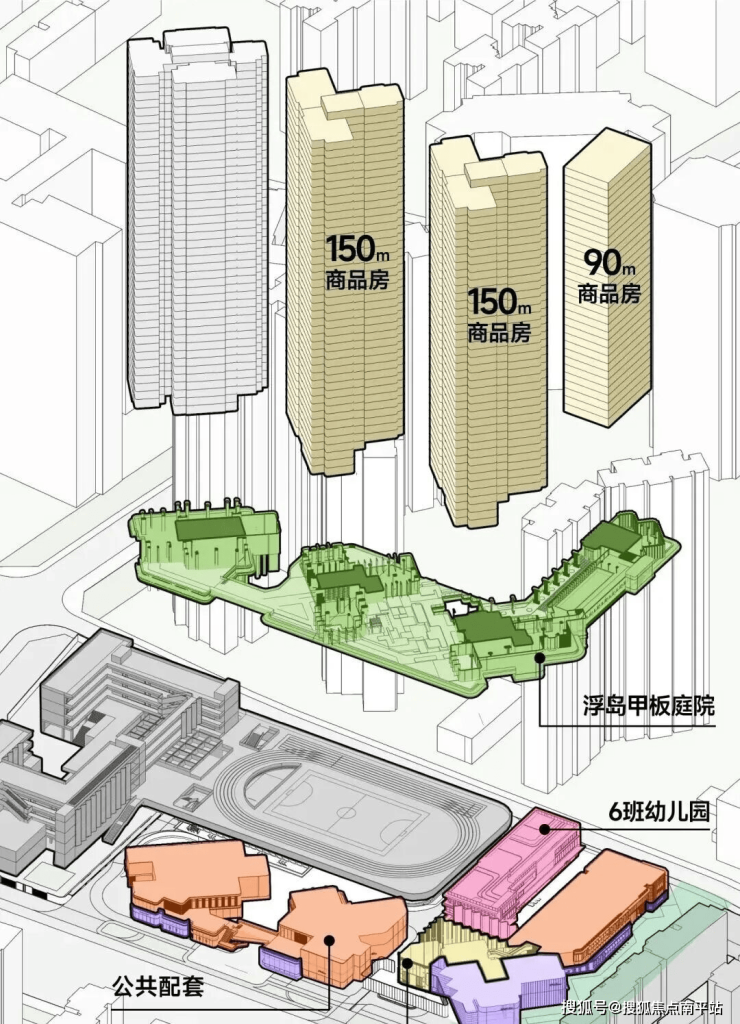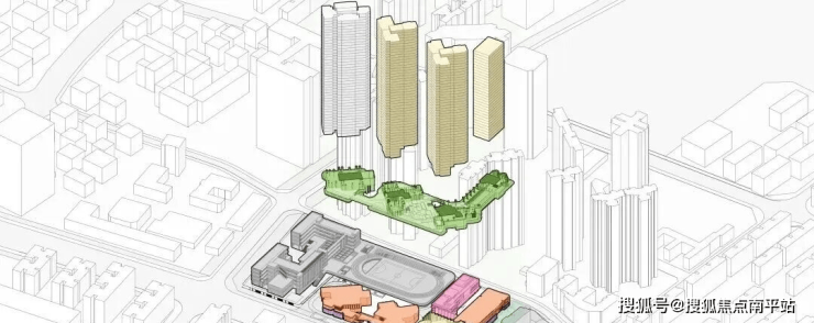 这次「后海招商玺」住宅设计采用“浮岛甲板”设计策略,四栋住宅落于甲板之上,独享甲板庭院花园。进而形成超级社区底盘 + 浮岛绿化甲板的垂直共生人居标杆。