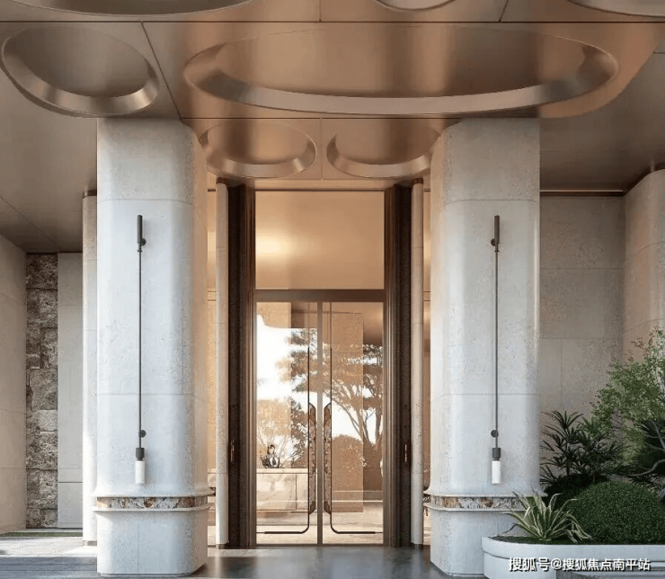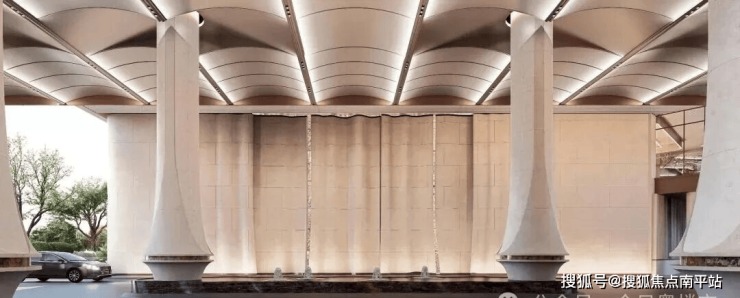 「后海招商玺」车行大门做了殿堂级落客区,设有天幕和水景,非常具备归家仪式感。