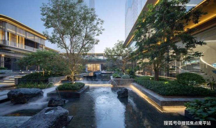 这里没有简单堆砌绿植和假山,而是规划了 垂瀑、艺术绿苑、观景平台等多种场景,不是只能远观,还能近距离体验,颇有“归家即度假”的松弛感。
