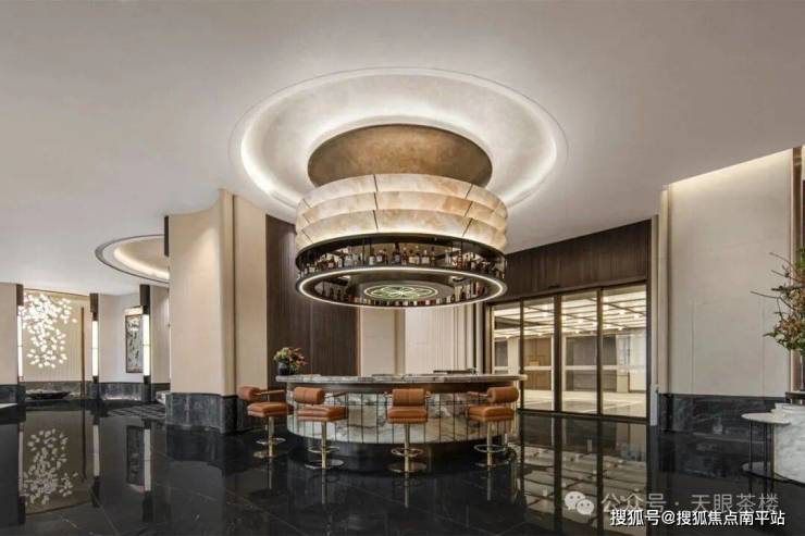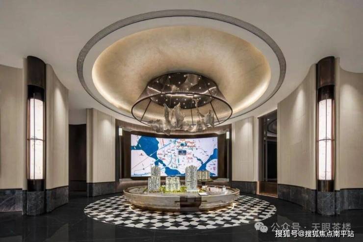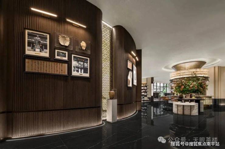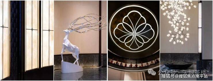 在设计上,各种书院美学细节拉满,比如采用非遗螺钿工艺打造的挂画,融入项目LOGO的壁灯,艺术过厅的花灯雕塑,文创展示区的一“鹿”生花,模拟古籍肌理的沙盘区透光背景墙,营造“一茶一书一世界”静谧氛围的洽谈区等....