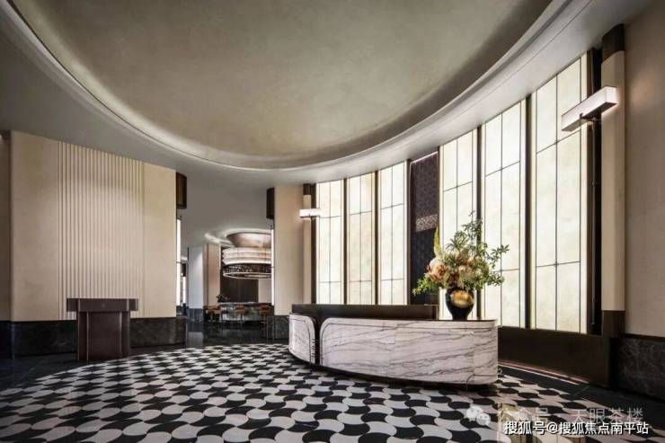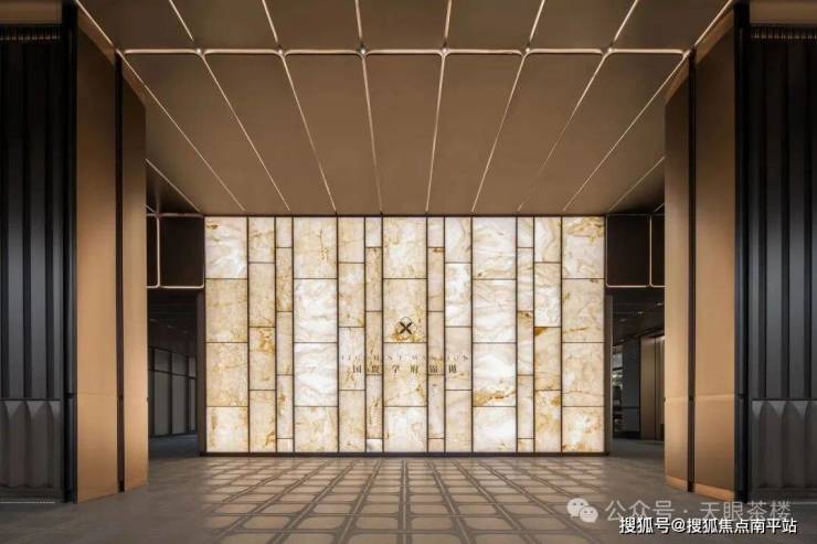 大门立面采用“爱马仕灰”石材,吊顶采用超大蜂窝铝板,入门背景墙采用“透光白冰玉”....书简、竹节、水墨纹理,细节见真章,处处彰显书院气息。