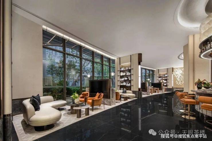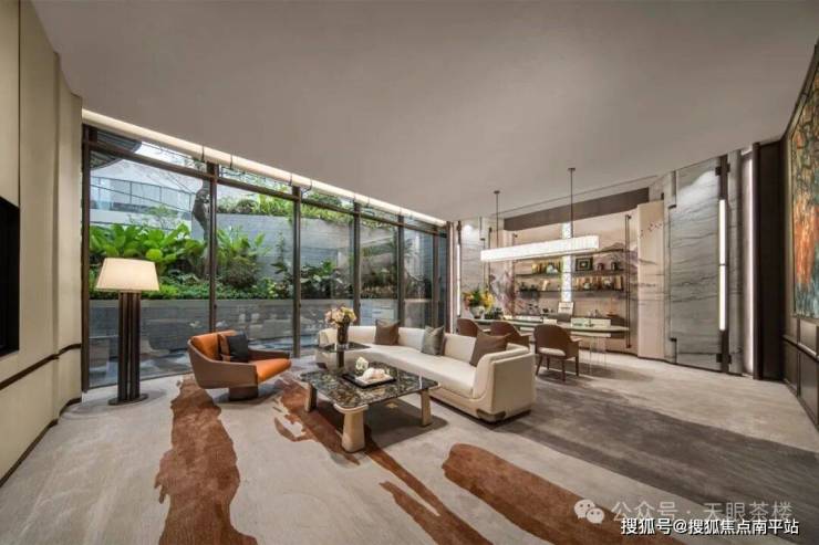 通过庭院空间,会经过一片精心打造的“开敞草坪”,旁边设有休闲座椅,然后就来到了这次实景开放的入户大堂,精致尊宠,归家仪式感满满。