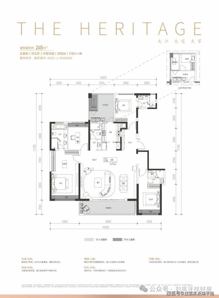 【245㎡户型鉴赏】:创新第三厅,约8.5米空中景观阳台,行政级主卧套房,中西双厨空间,敬献奢雅生活