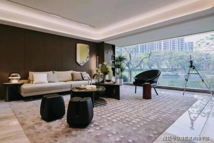约18.9米南向面宽,奢阔层高享受,约122方定制化多功能社交巨厅,15米转角阳台,一线观湖