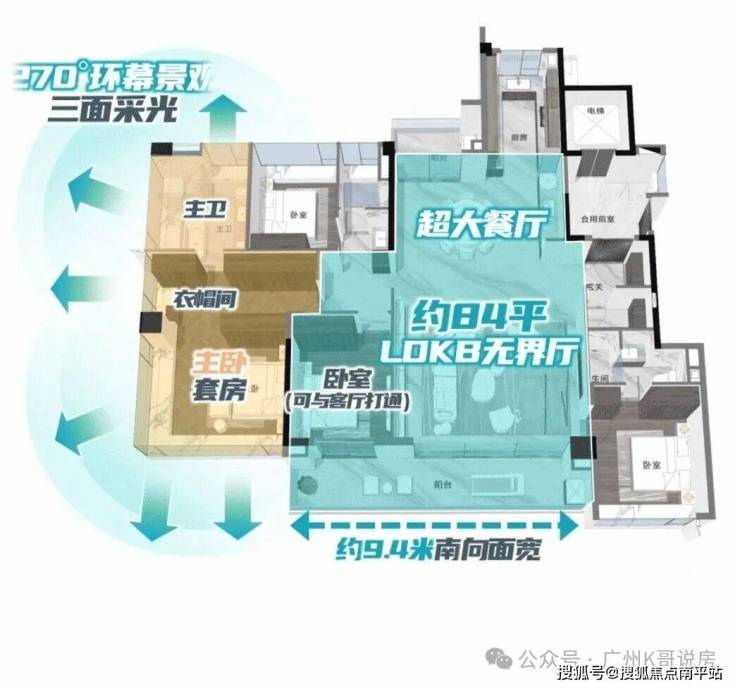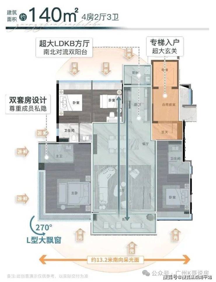 3、窗地比高达38%,主卧设置270°大飘窗。