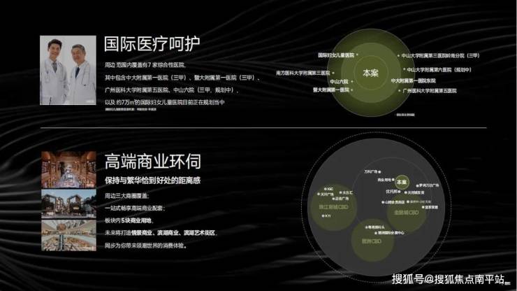 项目社区完善医疗服务、2公里内享三甲综合智慧型医院中山六院,附近有广州复大肿瘤医院及暨南大学附属第一医院,完善的医疗配套及6.9万㎡国际妇女儿童医院(规划中)。