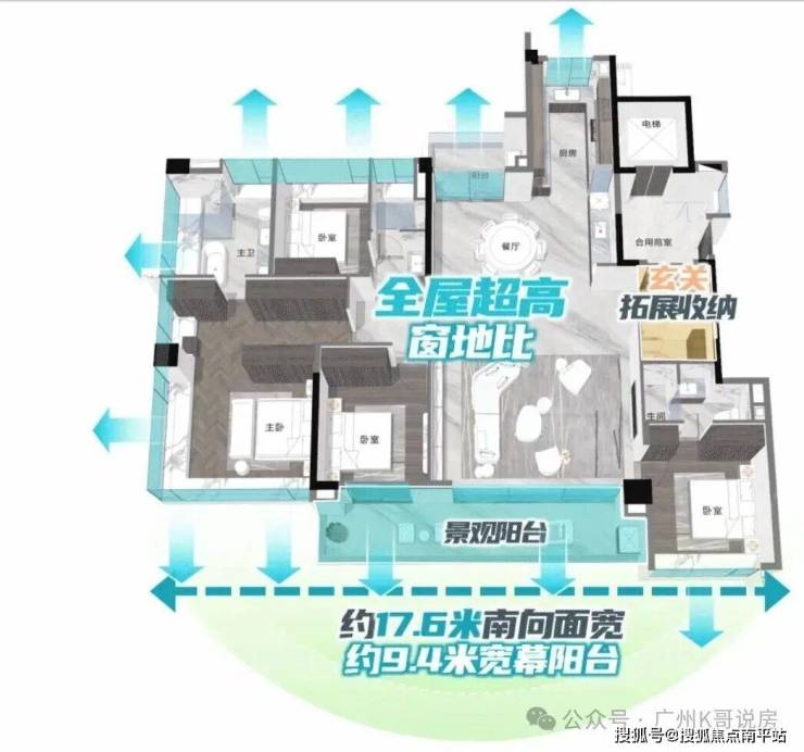 这远超广州常见的0.25住宅窗地比,让业主站在室内的不同位置,都能尽揽美景。